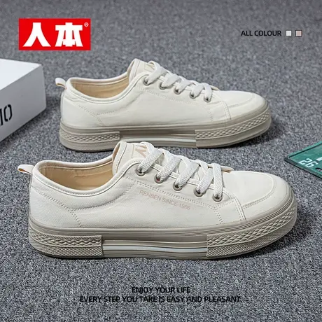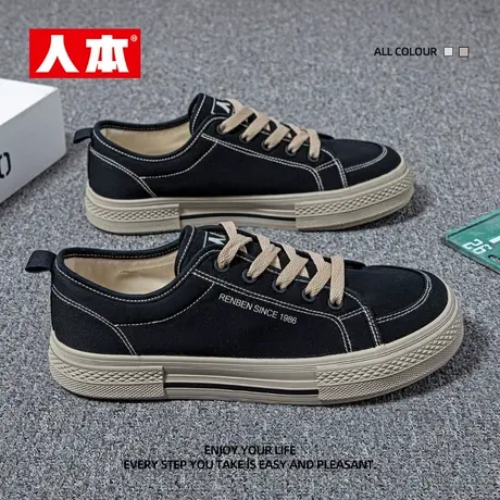 人本鞋官方旗舰店男款休闲帆布鞋平底板鞋学生百搭男鞋复古韩版潮